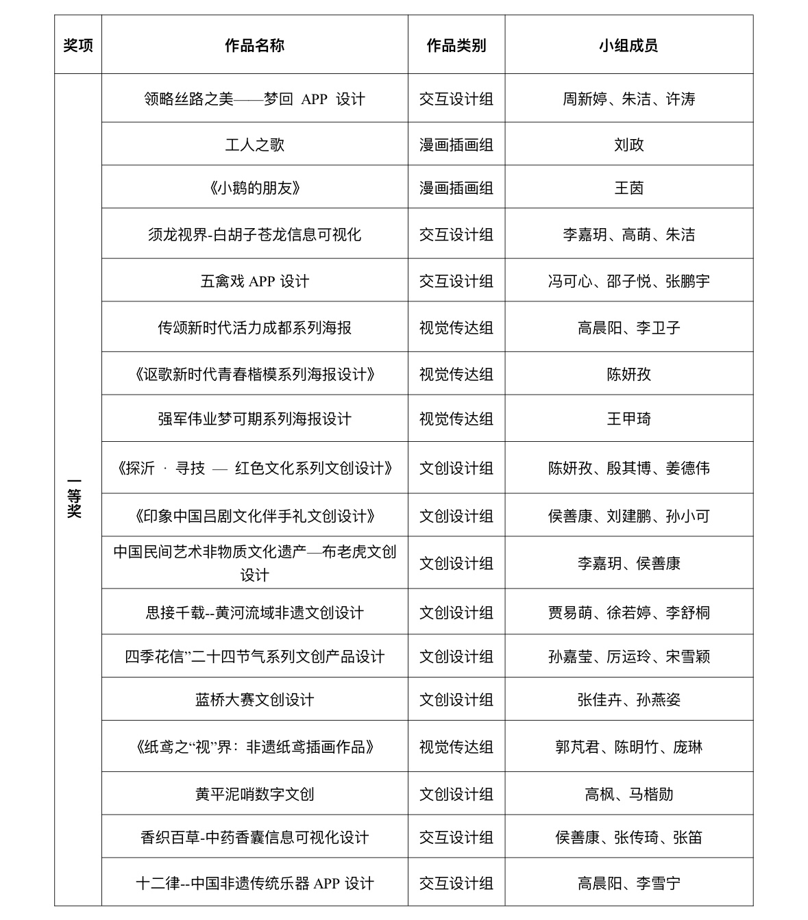 为强化大学生实践能力和创新精神的培养,提高大学生团队合作意识。由创新创业学院主办、艺术学院承办的2024年Williamhill中文“好创意”数字科技艺术设计大赛于2024年3月至10月举行。本次大赛共收到各类别作品共计237件,学生参赛人次数为304人次。经过专家评审,最终评选出一等奖18项,二等奖24项,三等奖32项。获奖名单见附件。