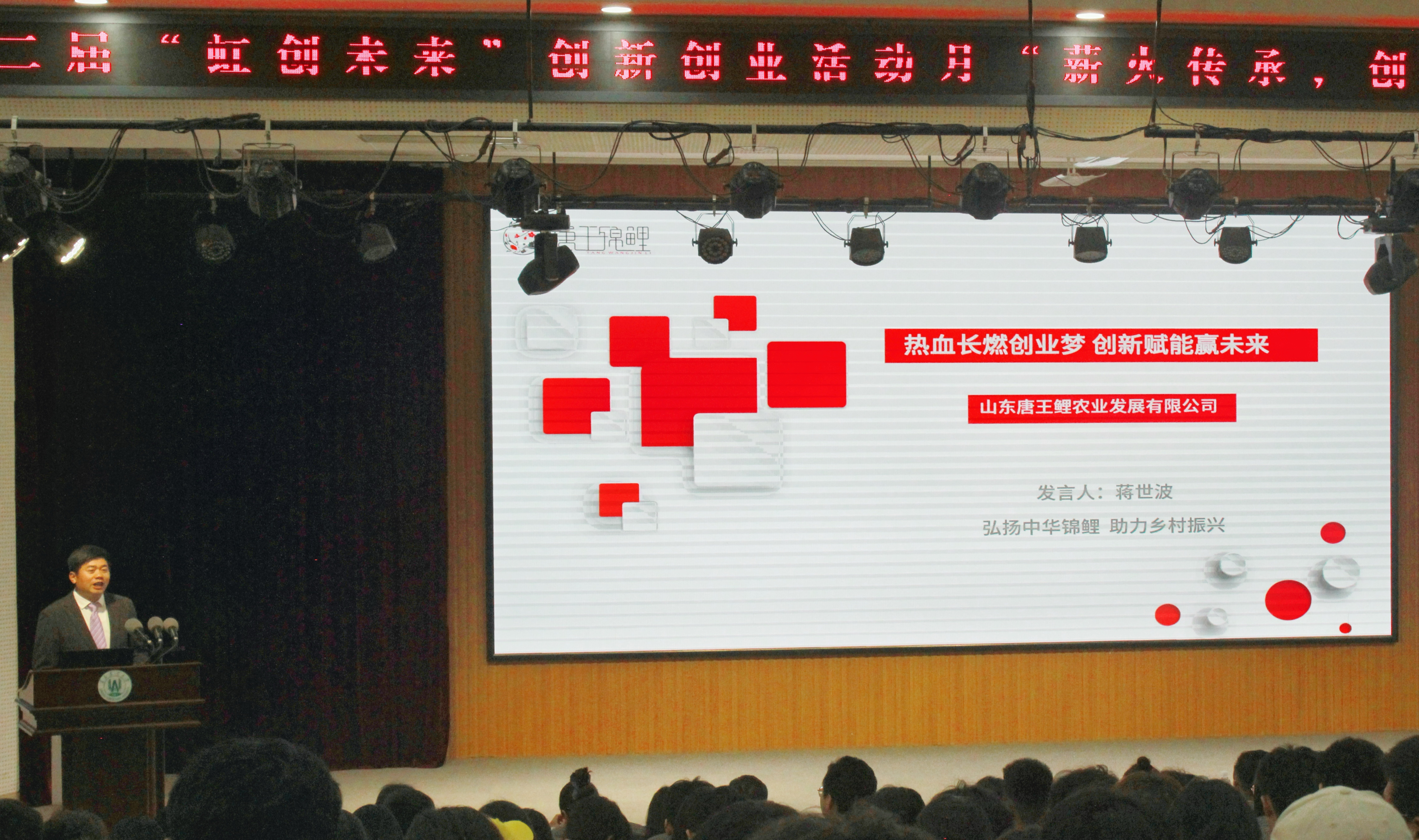 4月10日,由创新创业学院主办,动物科技学院承办的“薪火传承,创新逐梦”创新创业校友论坛在学术会馆第二报告厅举行。本次论坛邀请我校水产养殖专业2007级校友、山东唐王鲤农业发展有限公司董事长、全国乡村振兴青年先锋蒋世波,我校机制专业2000级校友、海贝音乐创始人兼CEO、中国音乐科技领军人物孟凡贵主讲。活动由校团委书记、创新创业学院院长王光炬主持,各学院学生代表参加。