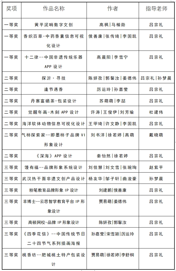 参赛作品聚焦于“艺术赋能乡村振兴”与“讲好中国故事”两大主题,充分展现了学院在人文特色方面的优势。其中,由吕宗礼老师指导,高晨阳、李雪宁同学共同完成的《十二律——中国非遗传统乐器APP设计》,以“吹拉弹打”和“古代八音”为分类基础,不仅普及了中国传统乐器及其历史背景知识,还展示了丰富多彩的传统乐器,让更多人领略到中国传统乐器的独特魅力。吕宗礼老师指导,高枫、马楷勋同学创作的艺术作品《黄平泥哨数字文创》,以泥哨的十二生肖为原型,创新设计了泥哨新纹样,并对包装与文创产品进行设计,使非物质文化遗产得以创新,彰显其独特魅力。吕宗礼老师指导,侯善康、张传琦、李国凯同学共同完成的艺术作品《香织百草-中药香囊信息可视化设计》,以中医中的香囊“衣冠疗法”为核心,结合信息可视化设计,旨在传播中国中医之美,推动中国优秀传统文化的创造性转化与创新性发展。