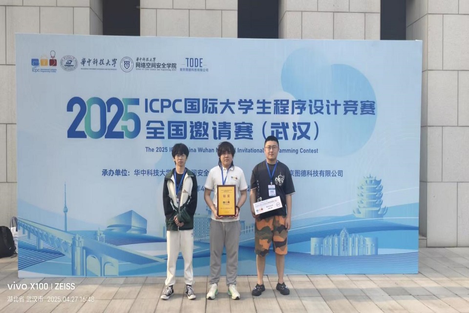 2025年4月至5月ICPC国际大学生程序设计竞赛全国邀请赛(武汉)、ICPC国际大学生程序设计竞赛全国邀请赛(西安)、ICPC国际大学生程序设计竞赛全国邀请赛(南昌)分别在华中科技大学、西北工业大学、江西师范大学成功举办。王静老师指导的我校ACM实验室李德辰、吴迪、穆帅宇三位同学组成的代表队和聂千山、王德涛、刘志朋三位同学组成的代表队凭借出色表现,从全国300余支参赛队伍中脱颖而出,分别在武汉和西安两个赛站勇夺铜奖,为学校赢得宝贵荣誉,这代表着我校学生程序设计能力的全面提高。