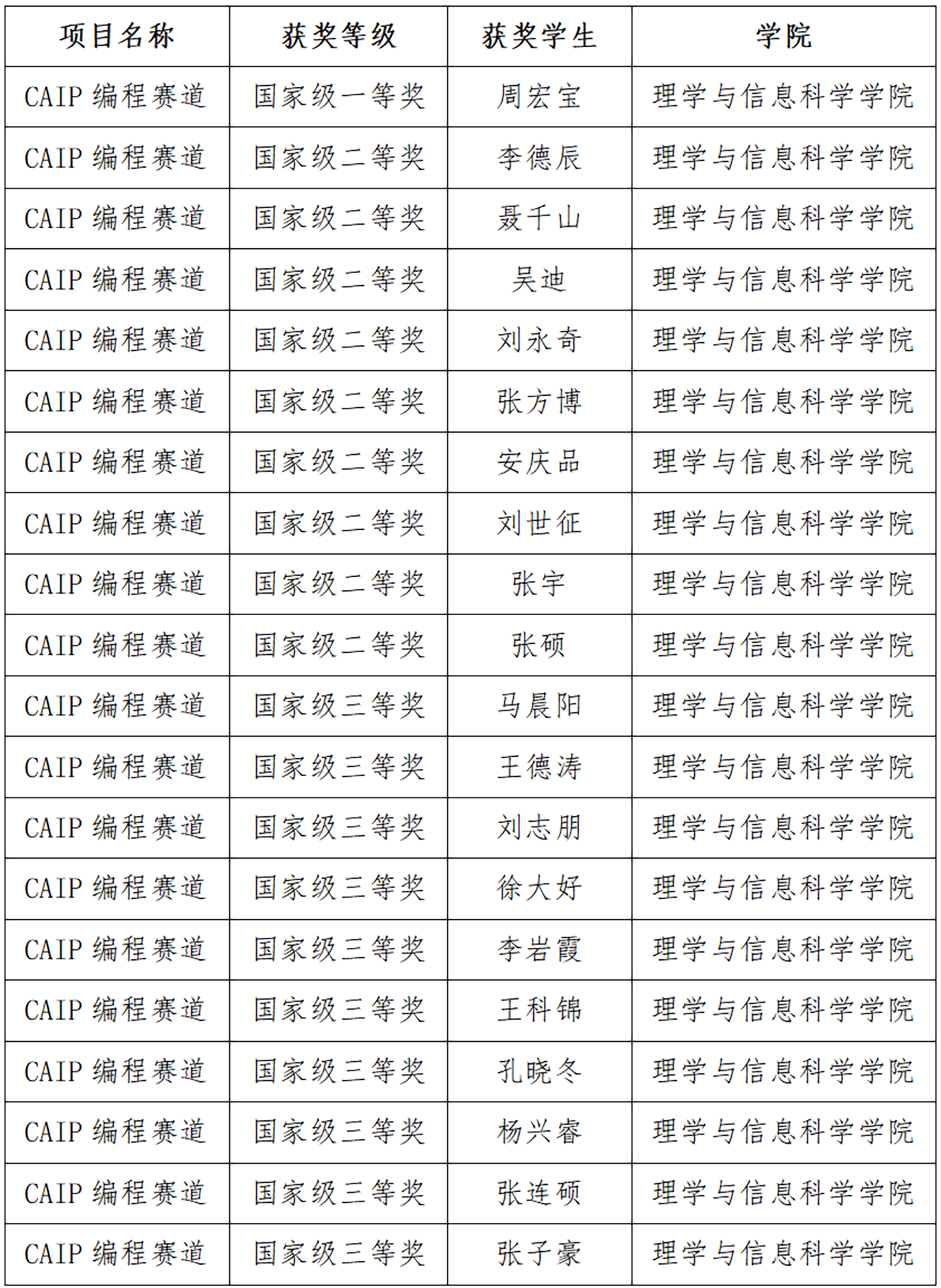 CAIP编程设计赛道“编程技能赛”运用C、Java、Python语言,分治、回溯、深度优先搜索、动态规划等算法设计技术,设计并编程实现5个高效算法,分别解决旅游热线规划等问题。大赛要求参赛队员在两个小时内,独立编程解决5道算法设计题目。周宏宝同学运用动态规划技术设计的高效算法,在64M内存下400毫秒内解决旅游热线规划等问题,所设计的算法程序能够准确并快速的解决问题,算法效率高、用时少,最终夺得国赛一等奖。